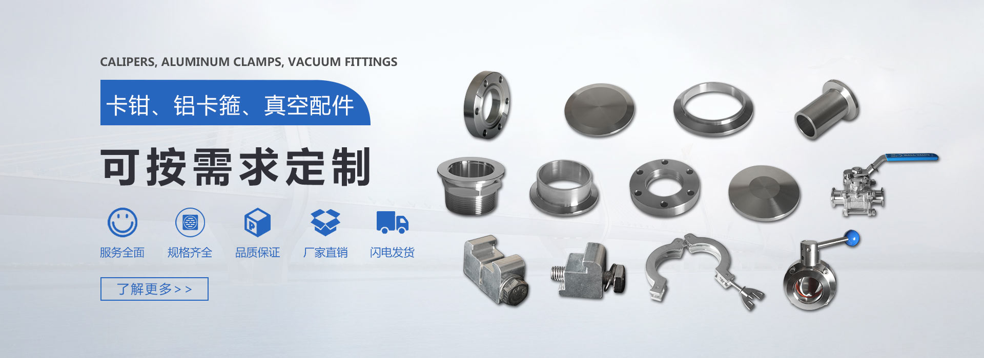 溫州深拓機械制造有限公司是一家專業生產真空卡箍、真空卡鉗、真空支架、真空彎頭、真空管件、真空四通、真空(大小頭、轉接頭、皮管接頭)、真空波紋管、真空外絲、真空內絲、真空擋板閥、單雙邊卡鉗、高真空球閥的廠家。產品廣泛應用于晶體生產設備、國防科研、半導體制造、光伏太陽能、化工設備、生物制藥、普通全軟管、機械設備、乳品、啤酒、食品、制藥、飲料、化妝品及化工等工業領域。公司產品系列產品均由不銹鋼SUS304、SUS316L、ADC12國標鋁、6063型材鋁精制而成,產品嚴格按SMS、ISO、DIN、IDF和3A工業標準要求,對質量實時全程監控,因而產品質量得以持續、穩定地發展。